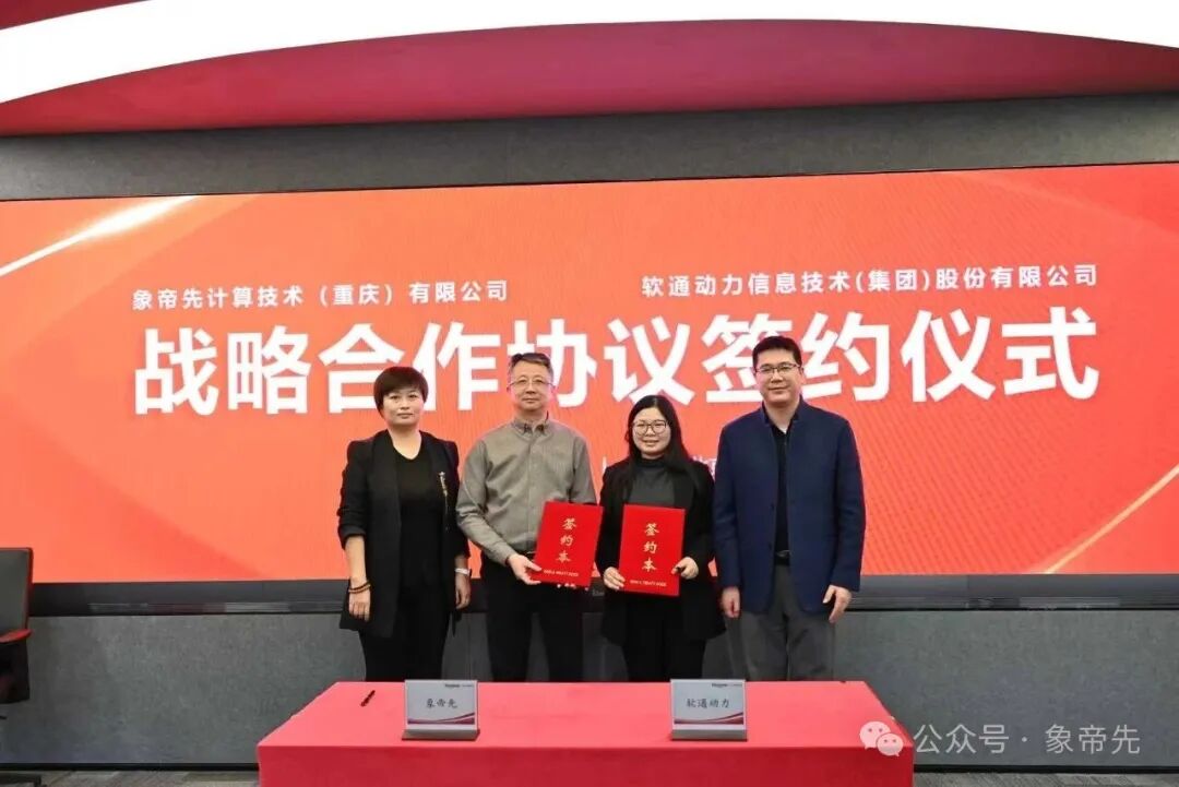 2月12日,象帝先计算技术(重庆)有限公司(以下简称“象帝先”)与软通动力信息技术(集团)股份有限公司(以下简称“软通动力”)在京签署战略合作协议。双方将协同推进图形计算芯片与行业平台的深度融合,聚焦数字孪生、工业仿真等共创解决方案,加速场景应用智能跃迁。象帝先副总裁张丹、销售运营中心总经理王耀宇,软通动力董事兼首席技术官刘会福、副总裁兼集团创新与技术研究院副院长雒冬梅等出席签约仪式。